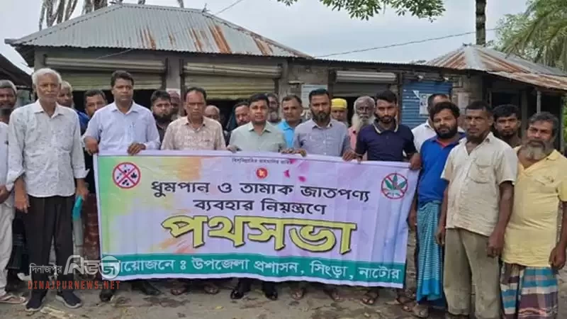 নাটোরের সিংড়ায় ধুমপান ও তামাক জাতপণ্য ব্যবহার নিয়ন্ত্রণে পথসভা করেছে উপজেলা প্রশাসন।