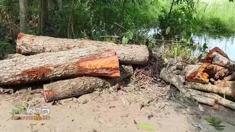 নওগাঁর মান্দায় বনবিভাগের বিরুদ্ধে ব্যক্তিমালিকানার গাছ কাটার অভিযোগ