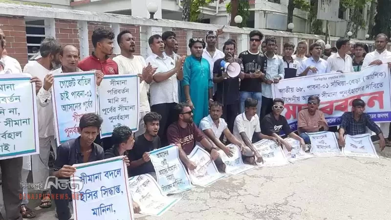 পাবনা-১ আসন থেকে বেড়া উপজেলাকে বাদ দেওয়ার প্রতিবাদে বিক্ষোভ ও মানববন্ধন কর্মসূচি পালন করেছে বেড়ার এলাকাবাসী।