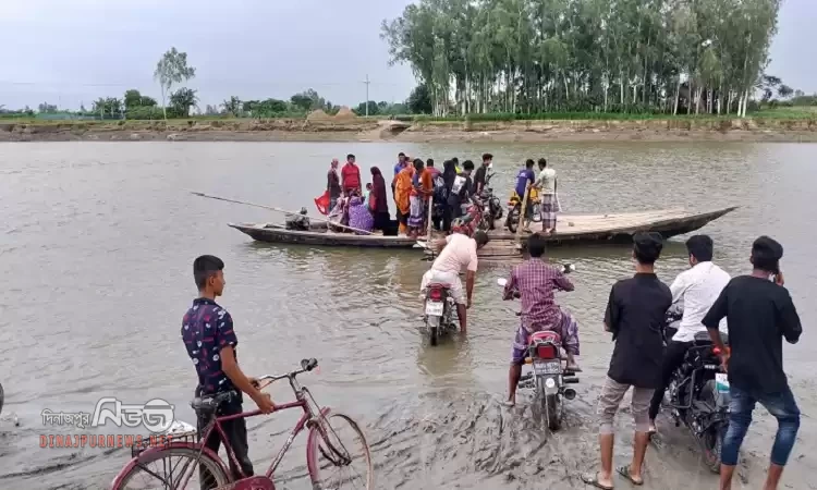 প্রতিদিন নৌকায় ঝুঁকি নিয়ে নদী পার হচ্ছে ঘোড়াঘাট ও পলাশবাড়ীর ৪০ হাজার মানুষ