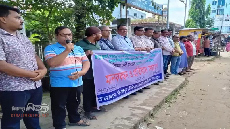 দিনাজপুরে সাংবাদিক লিয়াকত আলী বাবুলকে হত্যাচেষ্টার প্রতিবাদে মানববন্ধন ও সমাবেশ