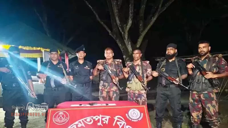 বিজিবি জানায়, দিবাগত রাত ১টার দিকে চাঁপাইনবাবগঞ্জের মহানন্দা ব্যাটালিয়নের (৫৯ বিজিবি) আজমতপুর বিওপির আওতাধীন শাহাবাজপুর ইউনিয়নের বাগিচাপাড়া গ্রামে বিজিবি ও র‌্যাব যৌথ অভিযান চালায়। অভিযানে মালিকবিহীন ১টি বিদেশি পিস্তল, ৬ রাউন্ড গুলি ও ২টি ম্যাগাজিন উদ্ধার হয়।