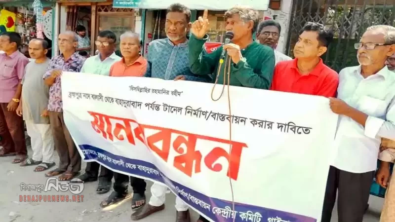 শনিবার (২৭ সেপ্টেম্বর) দুপুরে শহরের আসাদুজ্জামান মার্কেটের সামনে এ মানববন্ধন অনুষ্ঠিত হয়েছে। ‘ব্রহ্মপুত্র নদে বালাসী থেকে বাহাদুরাবাদ পর্যন্ত টানেল নির্মাণ/বাস্তবায়ন কেন্দ্রীয় কমিটি গাইবান্ধার উদ্যোগে এ কর্মসূচী পালন করা হয়।