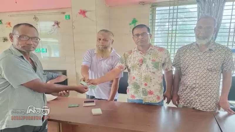 শারদীয় দূর্গাপুজা উপলক্ষে দিনাজপুর জেলা মটর পরিবহণ শ্রমিক ইউনিয়নের শ্রমিকদের মাঝে উৎসব বিতরণ