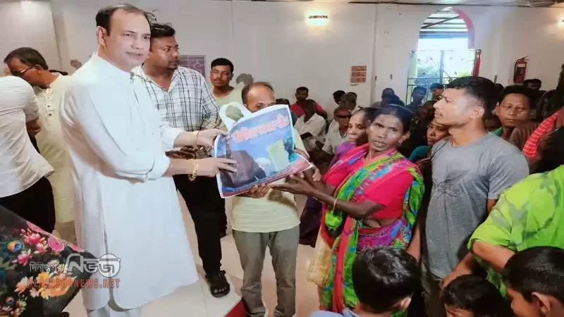 দুর্গাপূজা উপলক্ষে সনাতন ধর্মাবলম্বীদের মাঝে সেবক পার্টির বস্ত্র সামগ্রী উপহার