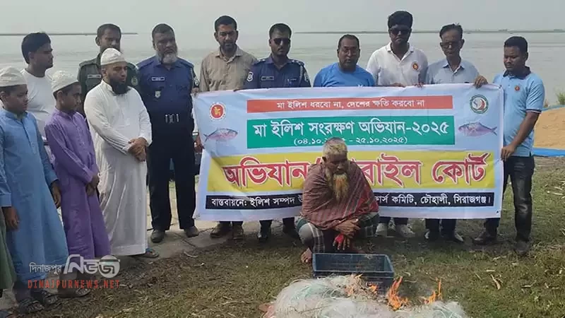 মা-ইলিশ রক্ষায় সিরাজগঞ্জের চৌহালীতে যমুনায় অভিযান, একজনের কারাদণ্ড