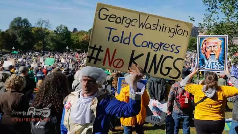 যুক্তরাষ্ট্রজুড়ে লাখো মানুষ ‘নো কিংস’ নামে আন্দোলনে অংশ নিয়ে ট্রাম্প প্রশাসনের বিরুদ্ধে বিক্ষোভ করেছে। তাদের মূল বার্তা ছিল—দেশটি ক্রমশ কর্তৃত্ববাদী শাসনের দিকে যাচ্ছে, অথচ যুক্তরাষ্ট্রে কোনো রাজা বা একনায়ক শাসন চলতে দেওয়া যাবে না।