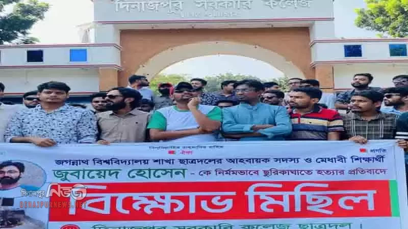 ছাত্রনেতা জুবায়েদ হত্যার প্রতিবাদে দিনাজপুর সরকারি কলেজ ছাত্রদলের বিক্ষোভ মিছিল