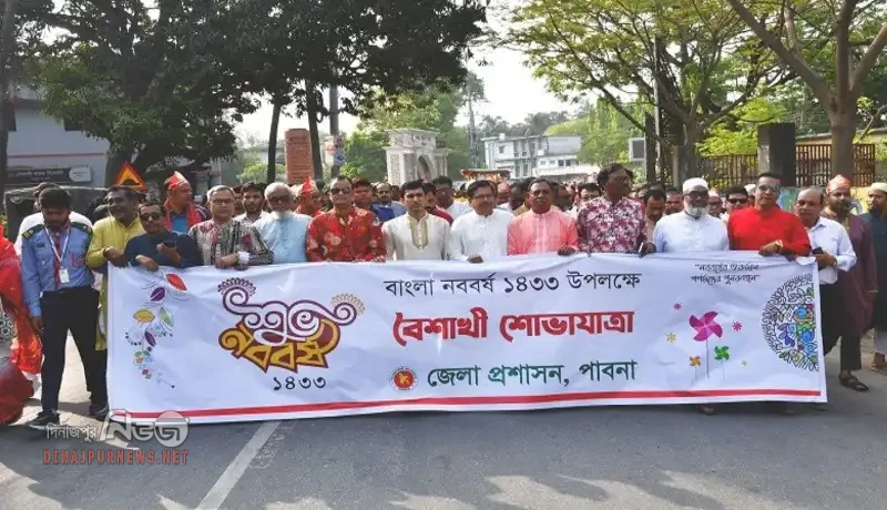 আজ পয়লা বৈশাখ বাংলা নববর্ষ ১৪৩৩। পাবনায় বর্ণাঢ্য আয়োজনে বাংলা নববর্ষ উদযাপন করা হচ্ছে। সকাল ৯ টায় জেলা প্রশাসক কার্যালয় থেকে জেলা প্রশাসনের আয়োজনে বৈশাখী শোভাযাত্রা বের করা হয়। শোভাযাত্রায় অংশ নেয় বিভিন্ন সরকারি বেসরকারি প্রতিষ্ঠানের শত শত মানুষ। শোভাযাত্রায় আবহমান বাংলার চিরায়ত চিত্র ফুটে ওঠে।