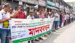 গাইবান্ধা পৌর মহাশ্মশানের জায়গা দখলের প্রতিবাদে বিক্ষুব্ধ গাইবান্ধাবাসীর মানববন্ধন