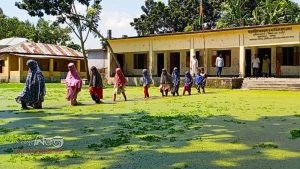 নাটোরের গুরুদাসপুরে হাঁটুপানি পেরিয়ে যেতে হয় শ্রেণিকক্ষ